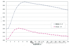 舒热丝®纤维具有良好的吸湿发热性能,比常规腈纶的发热效应明显,测试结果如下: