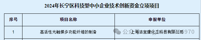 喜报!上海洁宜康“高活性光触媒多功能纤维的制备”领衔入选2024年度长宁区科技型中小企业技术创新资金立项名单