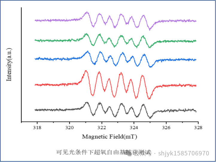 本项目研发的产品具有可见光下的明显光触媒效应(超氧自由基和羟基自由基):