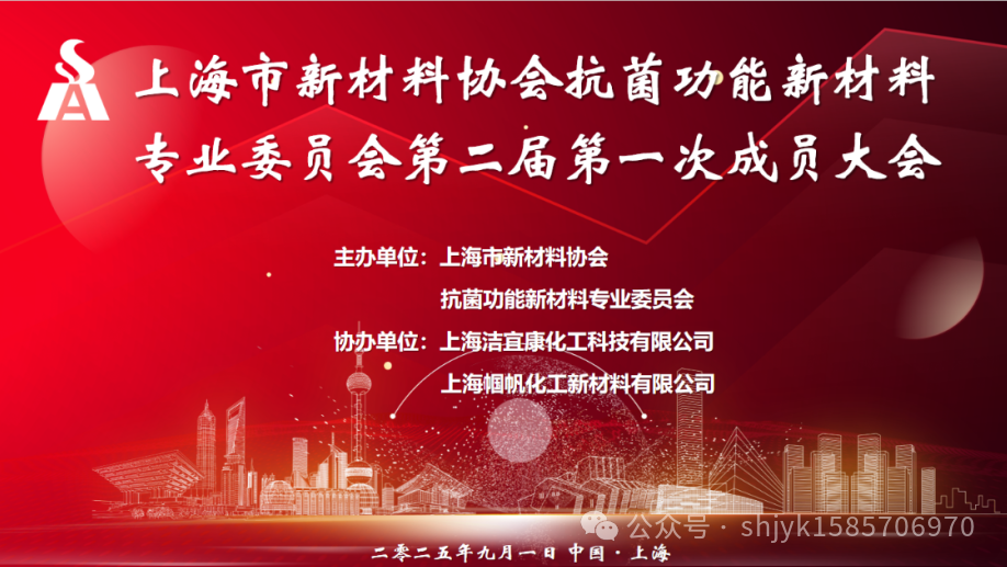 2025年9月1日,上海抗菌功能新材料专业委员会(以下简称“专委会”)第二届第一次会员大会于上海中环国际酒店盛大启幕并圆满落幕。此次盛会吸引了来自行业内众多领军单位与科研院所的积极参与,上海洁宜康化工科技有限公司、上海嘉麟杰纺织品股份有限公司等知名企业,以及东华大学、中国科学院上海硅酸盐研究所等高等学府与科研机构的代表,共计60余家会员单位齐聚一堂,共襄盛举。