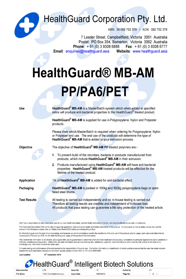 Functional auxiliariesFunctional Masterbatch/AdditivesFunctional fibers/yarnsAustralia HealthGuard®