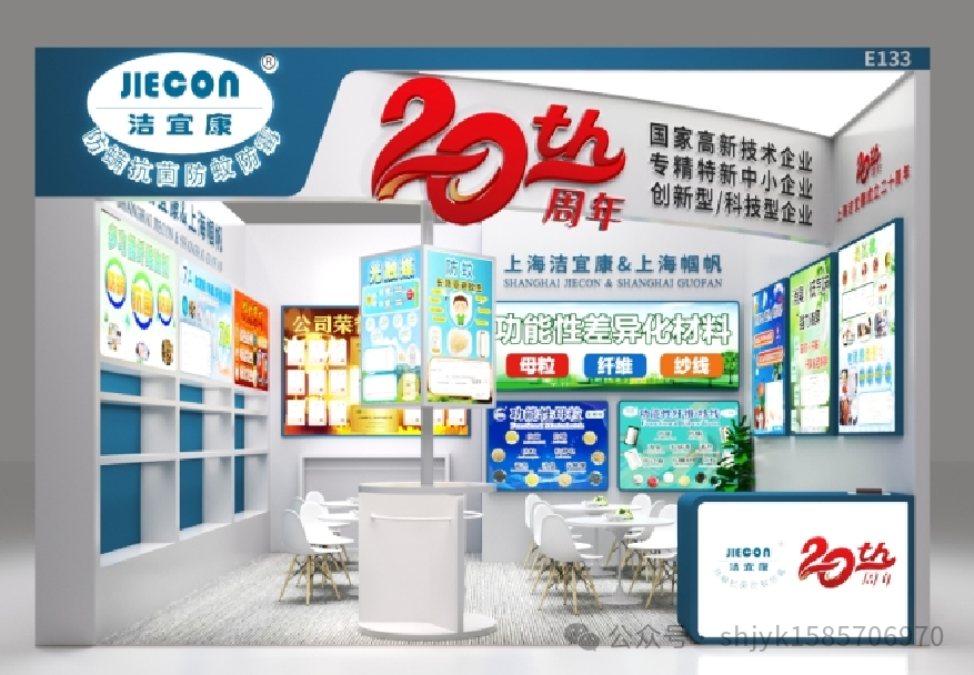 在此次纺织化工行业专业展会上,上海洁宜康化工科技有限公司与上海帼帆化工新材料有限公司强强联合,共同呈现了两家公司在纺织化学品研发领域的突破性创新成果。展台吸引了众多参观者的目光,成为展会中的一个亮点。