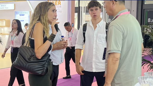 在本次展会中,我司展位成为全场焦点,吸引大量行业目光,现场人流如织,新客户纷纷到访。他们对功能性母粒、纤维/纱线系列及高性能助剂等创新产品表现出极高的热情与浓厚兴趣。这些新老客户群体广泛,不仅涵盖面料制造核心企业,还延伸至终端厂家及知名品牌决策者,有效拓宽了我们的市场合作网络。